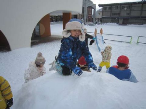 年明けより一気に冬景色になり、みんなで雪遊びをしました(^^♪