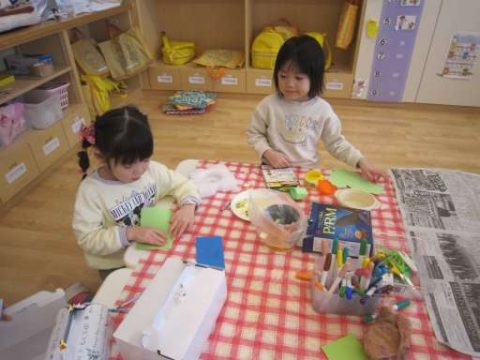 お部屋の中では、製作やお絵描き、ブロックで遊んだり