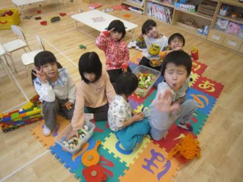 中には、お部屋にマットを敷きピクニックごっこを楽しんでいるお友だちもいました(^^♪