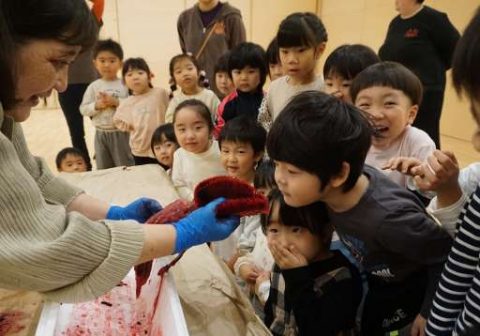 「ブリのにおいを嗅いでみたい人はいるかな?ちょっとくさいかも…」