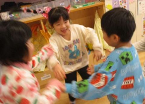 ダンスタイムでは、みんな大好き「チューチューねずみ海賊だ!」を踊りました🎵みんなで輪になって踊るところで大盛り上がりのぼたん組さんでした😊