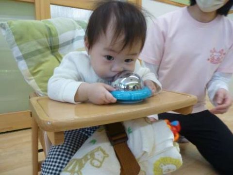みんなと同じ遊びを楽しみ、一人でお座りを出来る時間も増えてきました👏