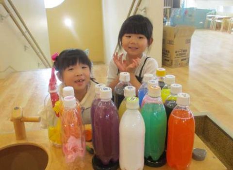 ギャラリー遊びでは、ぼたん組のお姉さんと一緒にカラフルなジュースを並べています🍹