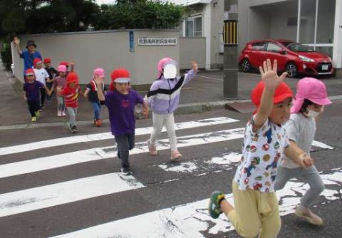 おしゃべりきかんしゃ♪の音楽に合わせて踏切遊びしました!