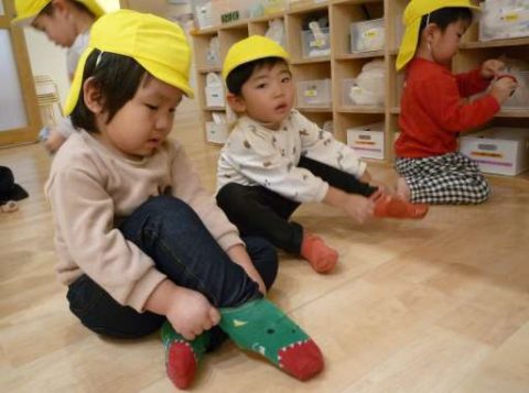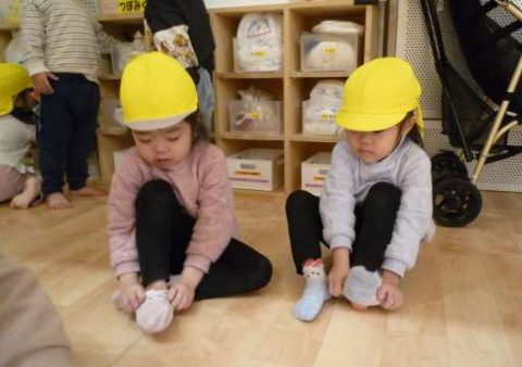 週明けの月曜日!いつもと変わらない元気な笑顔のお友だち😊✨気分転換を兼ね「お散歩に行こう!」ということで園の周りを少し散歩しました🎵靴下を履いて、ジャンバーを着て、靴を履いて・・といつも散歩への準備は自分でやろう!と頑張っています!