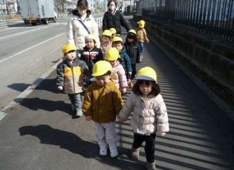 0歳児さんも散歩車から降りて、ウォーキングタイム👟