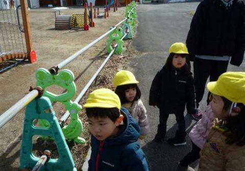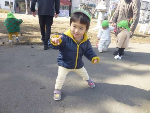 1歳児さんは、先生と手をつないで一歩一歩進む姿がかっこよかったです👏