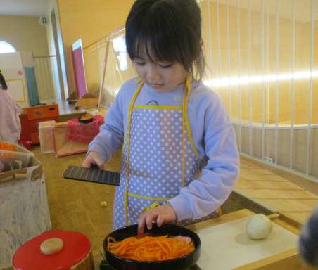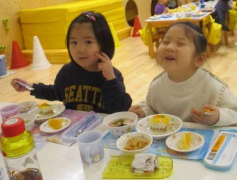 幼稚園にもどり、おなかがぺっこぺこ!!今日はひな祭りメニューでした🎎