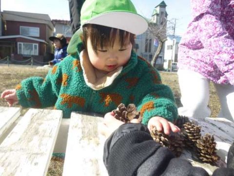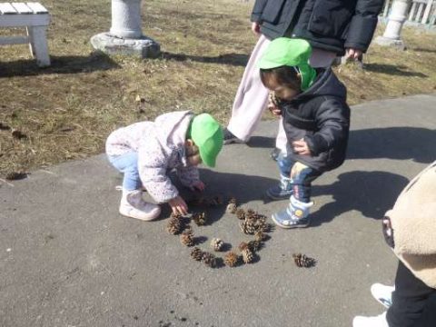 あれあれ?よく見ると、松ぼっくりアートが出来ていました🤩