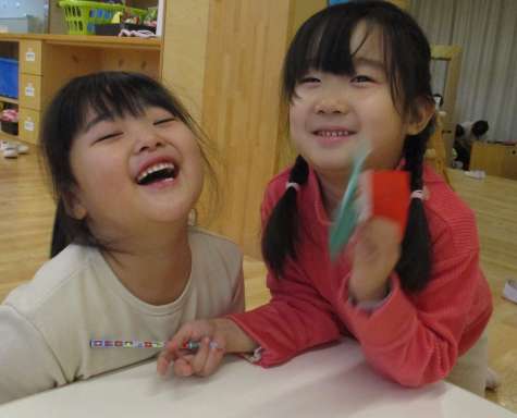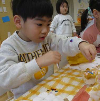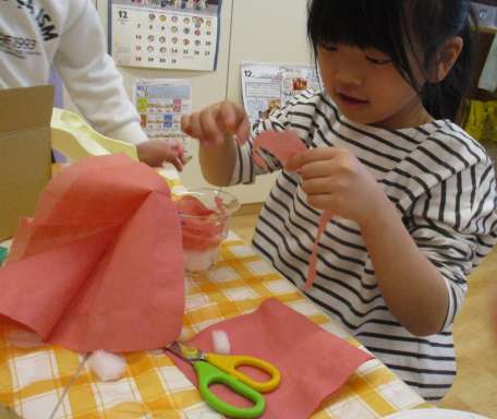 折り紙では・・・「何作る?」「冬っぽいもの作ろうよ!!」