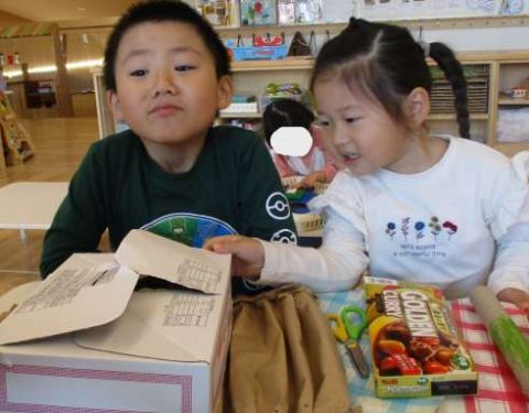 廃材遊びに夢中なお友だち、廃材コーナーでカレールーの箱を見つけました🍛