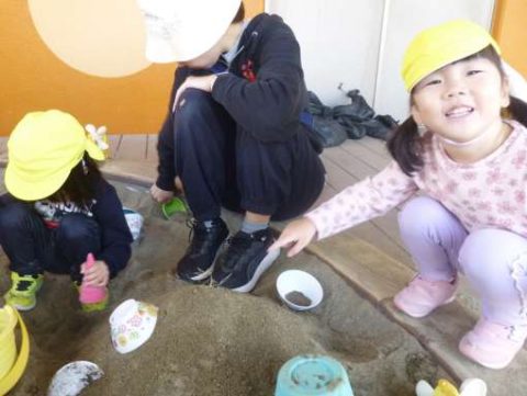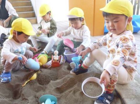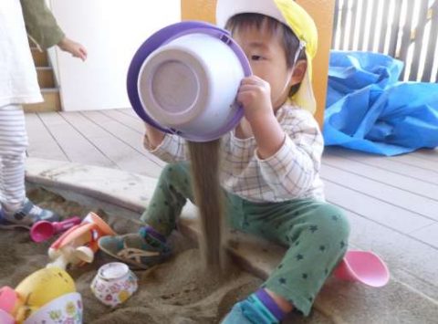 今日は砂遊びをたくさん楽しんだつぼみ組さん😊スコップやバケツなど好きな道具を使い、それぞれ思い思いに遊びを楽しんでいました🎵