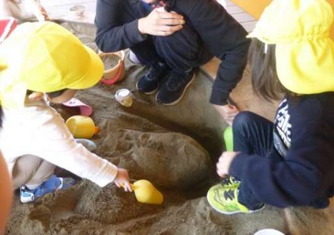 砂の中からスコップ発見‼お宝ゲット✨!この後宝探しが始まりました😊