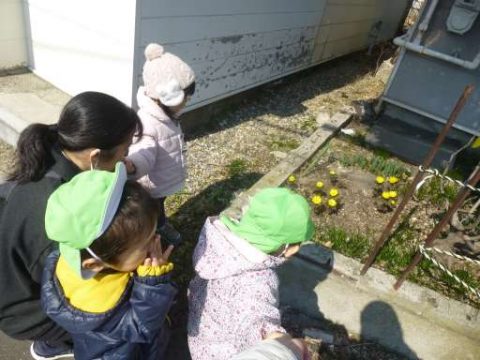 お散歩途中にお花が咲いているところを見つけました🌼みんなでお花を見ると嬉しい気持ちになります✨