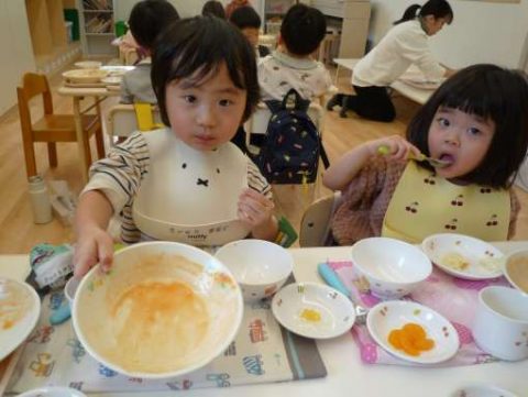 「おやさい🥦もたべれる!」「かんしょくする‼」最近のつぼみ組さんでは、食べる前に完食宣言をするお友だちが増えました!今まで苦手だった食材にも積極的にチャレンジする姿はかっこいいです😊