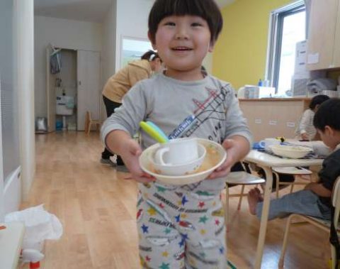 「じぶんでできるよ!」食べた後は、自分達で食器を片付けるようになりました😊