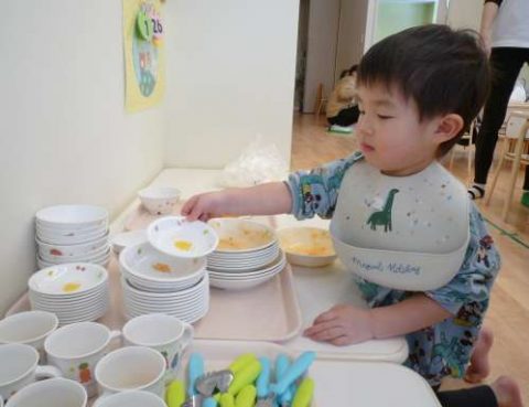 よく見て同じお皿を見つけ、重ねていきます😊またひとつできることが増えたつぼみ組さん🎵