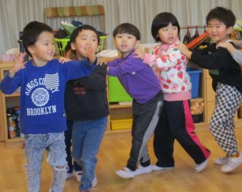 遊びバイキングの後のお部屋の時間はストップゲーム・じゃんけん列車・アイリンゴが人気です💗じゃんけん列車の今日のチャンピオンのお友だち、とても嬉しそうでした🚃