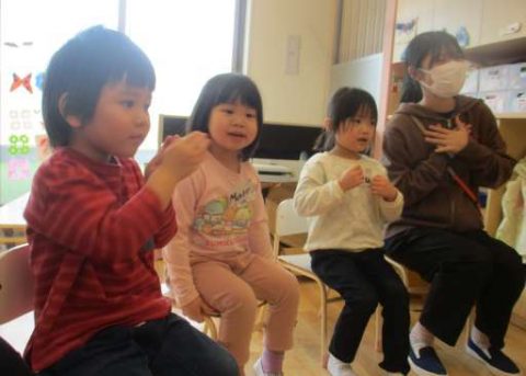 今日はつぼみ組さん最後の英語遊びの時間🎵一年間、歌や踊りを通して英語に触れ、楽しく身近に感じてきました😊