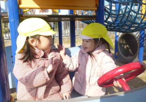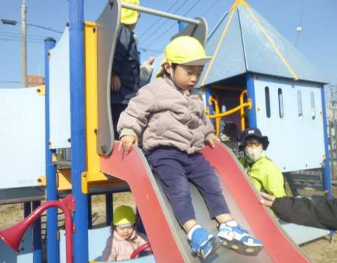 園庭にもレッツGO‼滑り台🛝も自分で滑れるようになりました😊