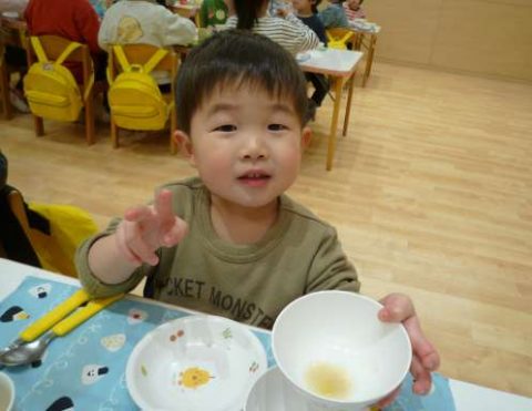 「おつゆのみどりのやさい、たべれたよ!✌」