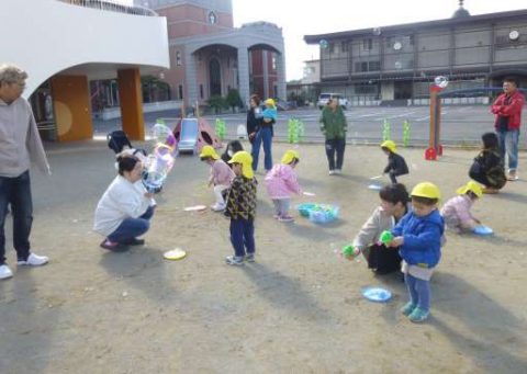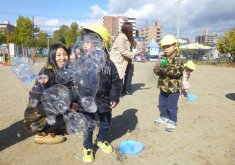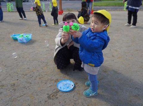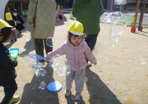 おうちの方が一緒なので大きなシャボン玉遊びにも挑戦しました!