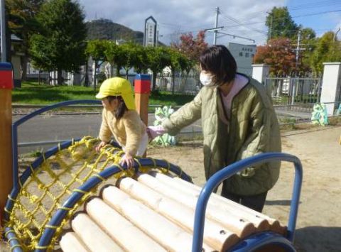 園庭の遊具にもチャレンジです‼おうちの方に見守られ「がんばるぞ!💪」