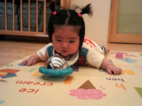 自分の顔が見えるおもちゃを目の前にして、「ん??これは誰なんだ❓❓」