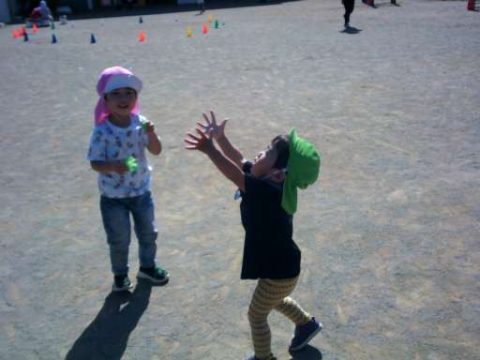 ここではさくら組のお兄さんがシャボン玉を吹いてくれ追いかけているところです🏃まてまてー👐