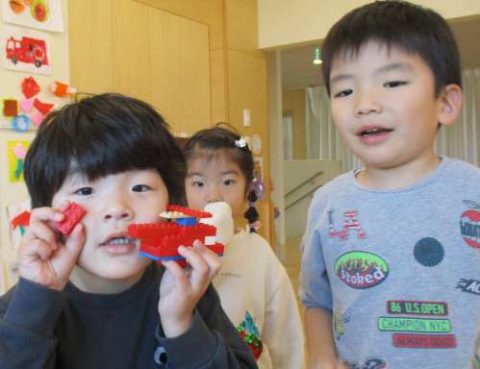 レゴブロックで「ヘリコプターできた!」と嬉しそうに見せてくれました👀その周りには「見せて見せて!」「いいな~」とうらやましそううに目を輝かせたお友だちが集まっていました🚁