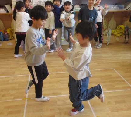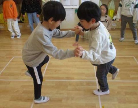はっけよい!のこった!ふじ 2月27日(金) 遊びバイキング時間に相撲をしていたふじ組のお友だち🌟 少しレベルアップしてケンケン相撲に挑戦!! 「はっけいよい!のこった!」 バランス感覚が必要です!! 「おっとっと!!」 ~英語~ 今まで取り組んできた、英語の歌を振り返りました! 🎵Rock Scissors Paper 🎵Rain Rain Go Away 等 最後はみんなが好きな体を動かして英語の歌に取り組みました☺