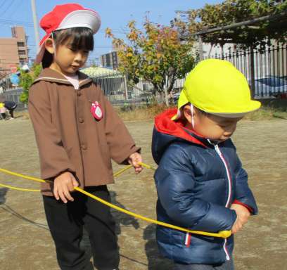 雨の日が続いたり、気温が低かったりと季節が冬に向かっている中、今日はぽかぽか園庭遊び日和でした🛝