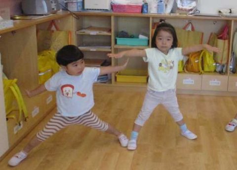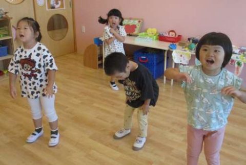 英語の後は体操です!お友だちが大好きな「よーいどん!」を元気いっぱいに踊りました!