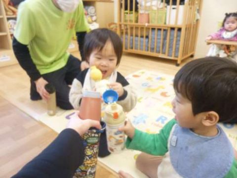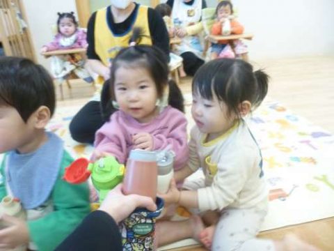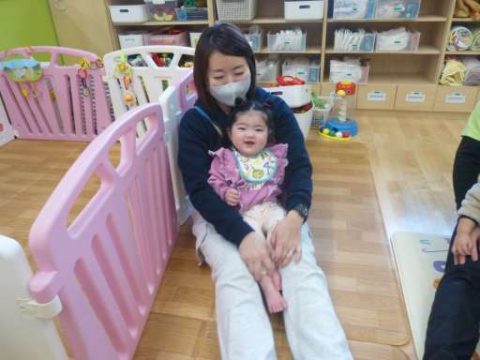 ふれあい遊びでは「バスにのって」を、先生のお膝に座り楽しみました🚌