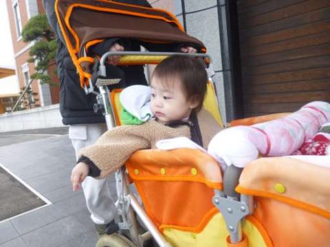 今日はまんまるちゃんを掴んで、歩いてお散歩です👣しっかり掴んで離さず歩けるかな??