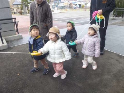 今日はお部屋でリズム体操やふれあい遊びを楽しんだ後、境内のお散歩に行きました🎶
