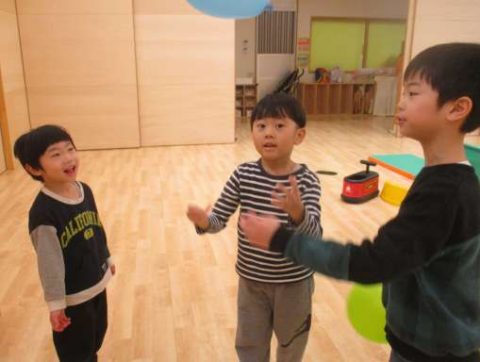遊びバイキングにてふじ組のお兄さんお姉さんの楽しい声につられて、風船ゲームに参加したようです😊