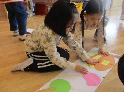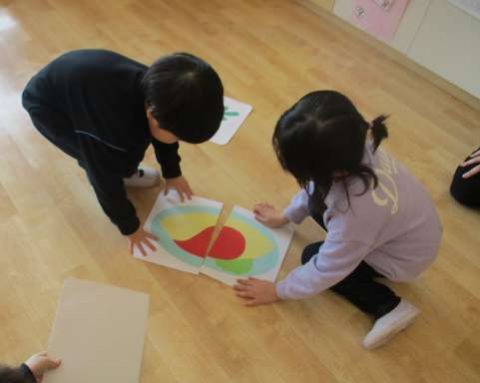 お友だちと協力しながら、ぴったり合う絵を探しています👀