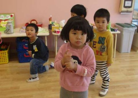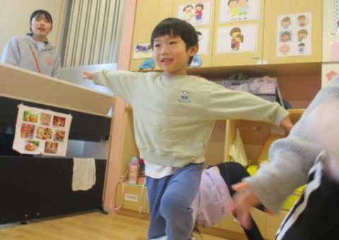 リズム遊びを楽しむさくら組さん。特にストップ!することが上手なのですが、今回はいろんなポーズでストップしてみました☆