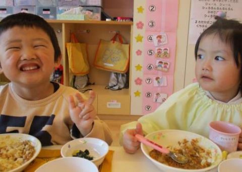 そして大好きなカレーを食べてニコニコ笑顔のお友だち😊