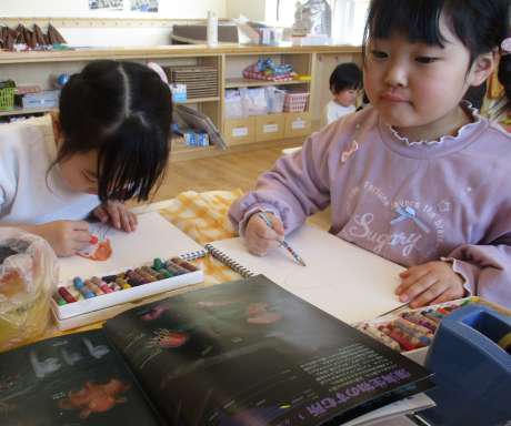 お部屋でも図鑑を横に特徴をとらえながら描いています✍