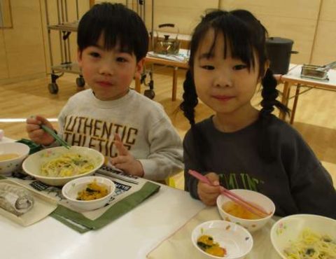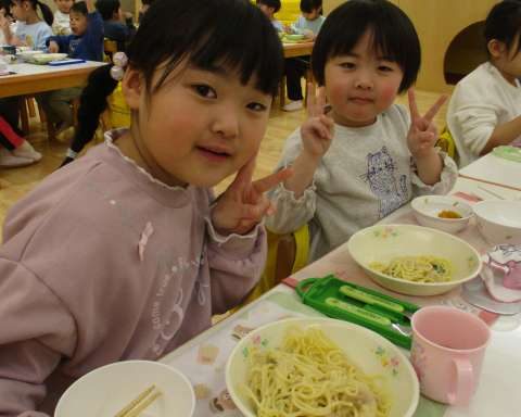 今日の給食はツナと菜の花クリームパスタでした😋