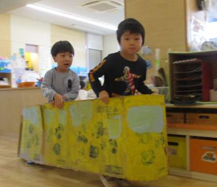 お部屋とギャラリーでは色々なはたらくくるまが登場していて、今日はバスが走っていたり🚌