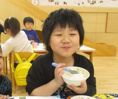 今日の給食は豆腐みそチーズグラタンでした🍽「絶対美味しいよね!」ととても楽しみにしていたぼたんさんは、もりもり給食を頂いていました😄🌟