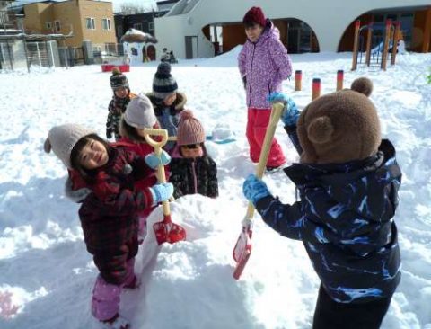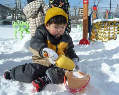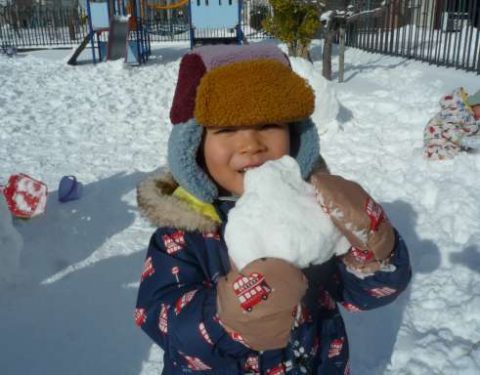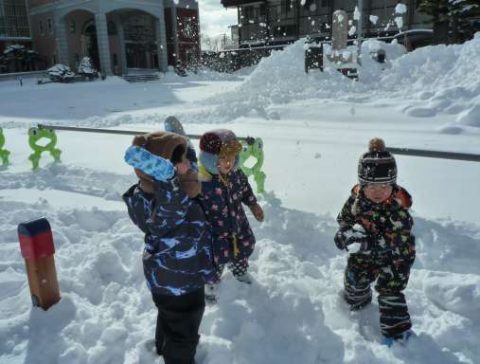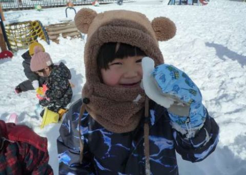 今日は英語遊びの後、園庭で思い思いに雪遊び⛄を楽しみました🎵
