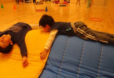 こちらでもぼたん組のお姉さんとマットの上でジャンプジャンプ!