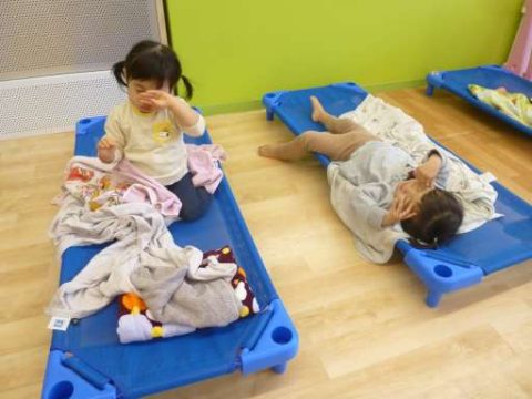 起きる時間になり先生が「おはよう🌞」とカーテンを開けると、ぞくぞくと目を開けます👀