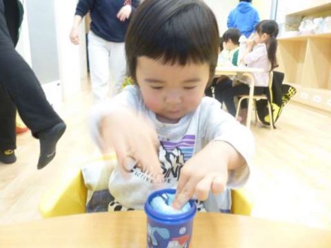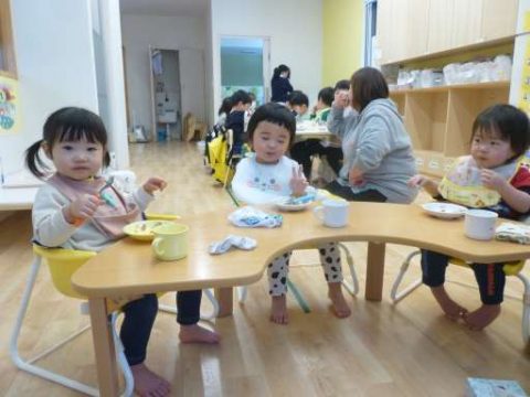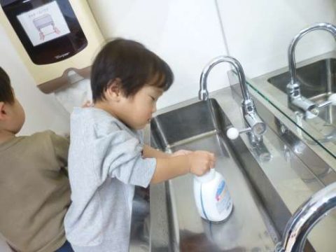 起きてトイレに行った後は、おやつの前に手を洗います.。o○