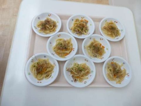 今日のおやつは焼うどん🥢麺類が大好きなふたばさんは大喜び🎶ソースのとてもいい匂いがしています🌟