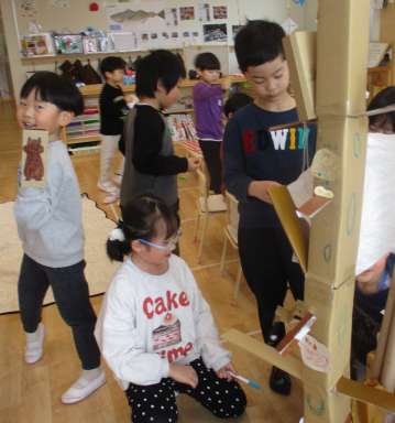 お部屋では、廃材遊びが充実しています✂